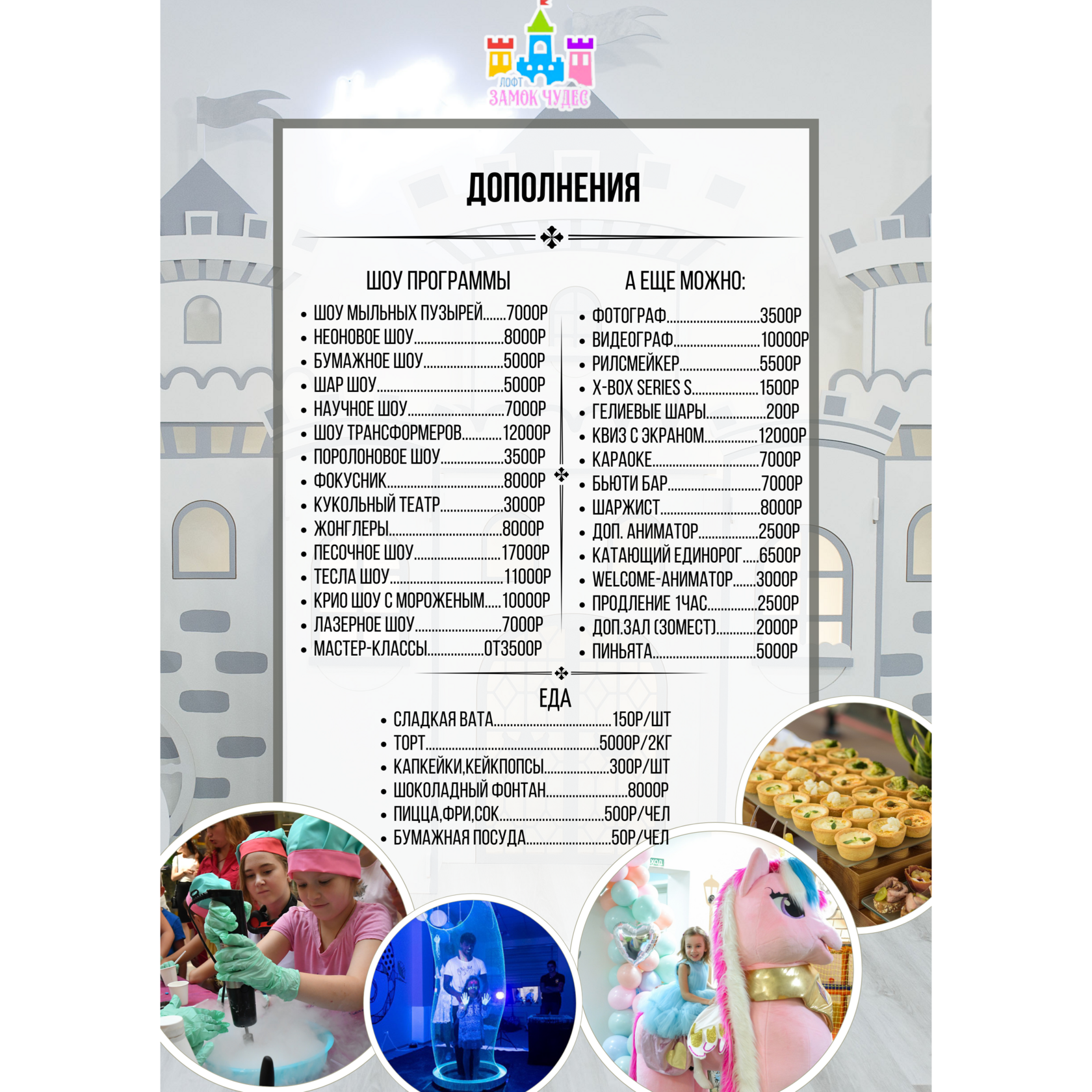 8. В пространстве проводится фото и видео съемка всех мероприятий. Если вы против фотографирования Вас, Вашего ребенка или Ваших гостей, пожалуйста, предупредите нас об этом до начала праздника.
